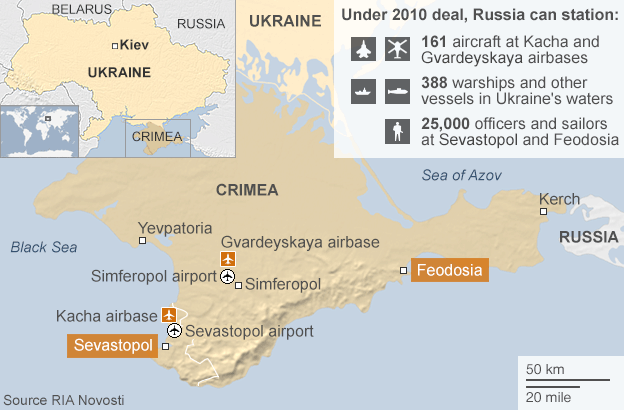 Ουκρανοί συνοριοφύλακες ανέφεραν σήμερα κινήσεις του ρωσικού πολεμικού ναυτικού στη Μαύρη Θάλασσα γύρω από τη Σεβαστούπολη, ενώ οι ίδιες πηγές επεσήμαναν ότι η Ρωσία έχει μπλοκάρει τις επικοινωνίες μέσω κινητών τηλεφώνων σε ορισμένες περιοχές της Κριμαίας.