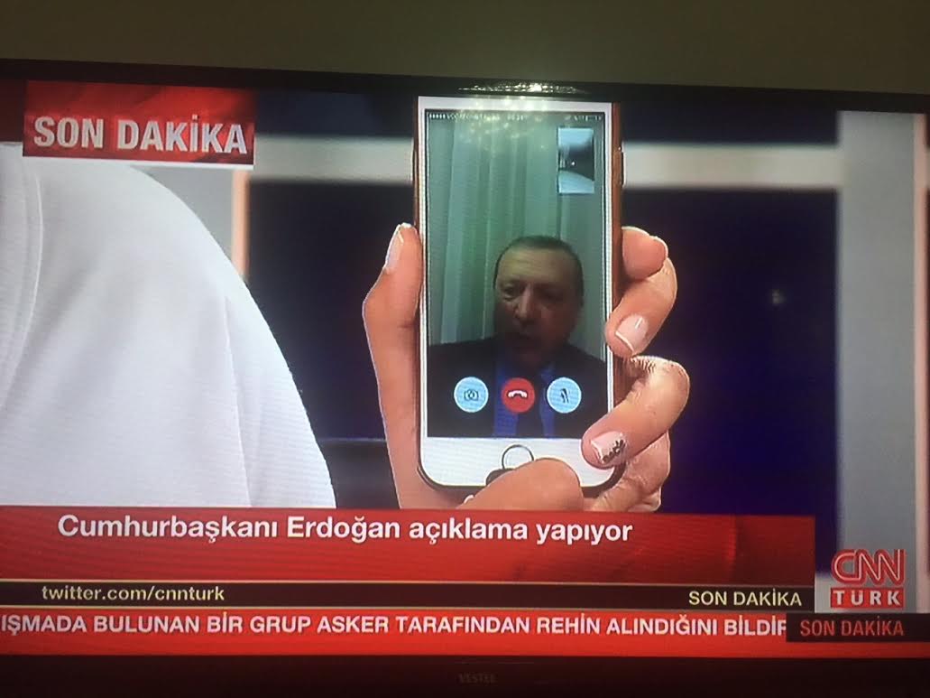 Περίπου 20 λεπτά μετά τα μεσάνυχτα ο Τούρκος πρόεδρος, Ταγίπ Ερντογάν, απηύθυνε διάγγελμα στον τουρκικό λαό αλλά μέσω Skype, με τις πληροφορίες να αναφέρουν πως βρίσκεται στην Αλικαρνασσό.