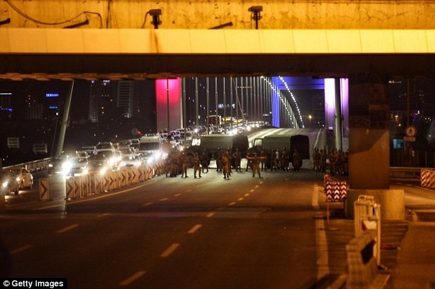 Λίγο μετά τις 22.30 οι στρατιωτικές δυνάμεις απέκλεισαν τη γέφυρα του Βοσπόρου και τη γέφυρα Φατίχ Σουλτάν Μεχμέττου, και στρατιώτες παρατάχθηκαν στο σημείο.Το αεροδρόμιο Ατατούρκ τέθηκε επίσης υπό τον έλεγχο του στρατού. Όλες οι πτήσεις από και προς το Ατατούρκ έχουν ματαιωθεί.