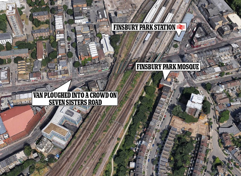 Ένα νέο αιματηρό περιστατικό σημάδεψε το βράδυ της Κυριακής τη βρετανική πρωτεύουσα, όταν βαν έπεσε πάνω σε πλήθος ατόμων, κοντά σε τέμενος στο βόρειο Λονδίνο, στο πάρκο Finsbury, την ώρα που έβγαιναν από το τοπικό τζαμί έπειτα από προσευχή. Η επίθεση σημειώθηκε στις 12.20 (τοπική ώρα, 02.00 ώρα Ελλάδας).