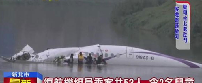 Σύμφωνα με το RT, κάτω από αδιευκρίνιστες συνθήκες, το αεροσκάφος της TransAsia Airways άρχισε να χάνει ύψος ελάχιστα λεπτά μετά την απογείωσή του από το αεροδρόμιο της πρωτεύουσας, με αποτέλεσμα να καταλήξει μέσα στα νερά του ποταμού Κιλάνγκ.