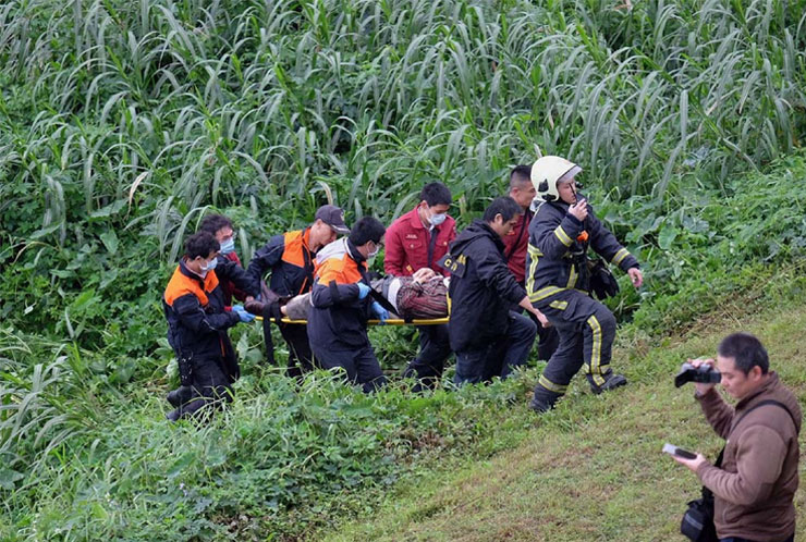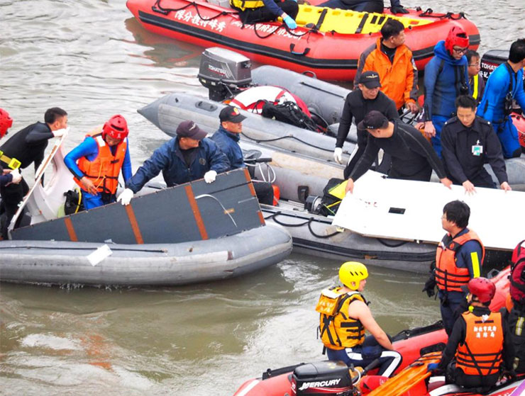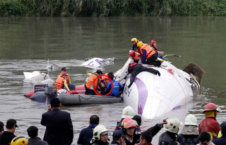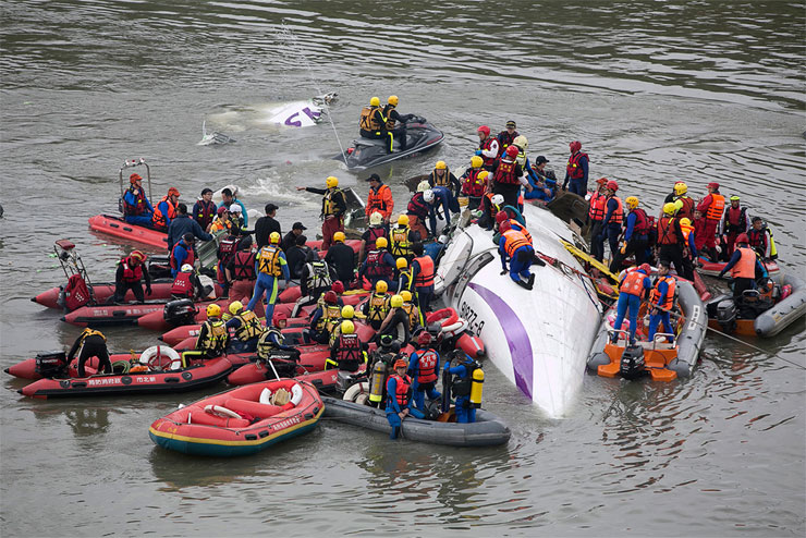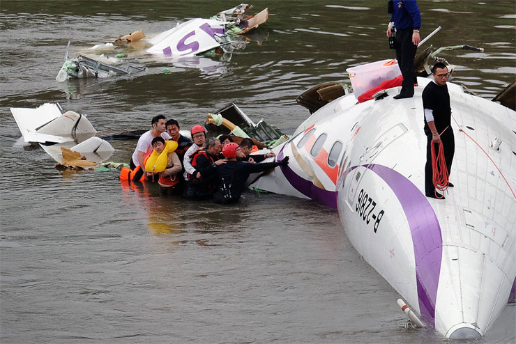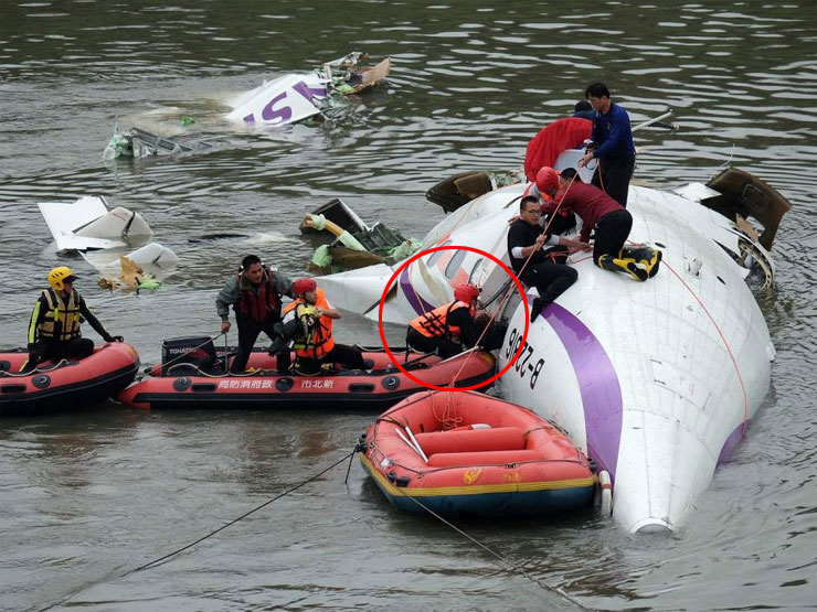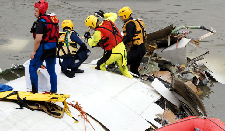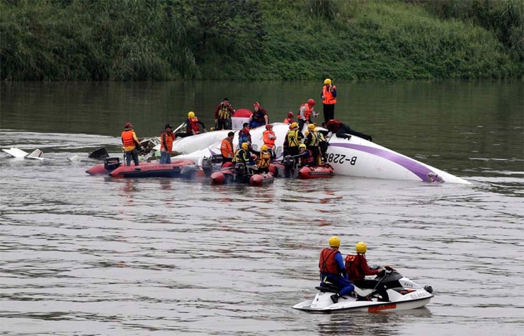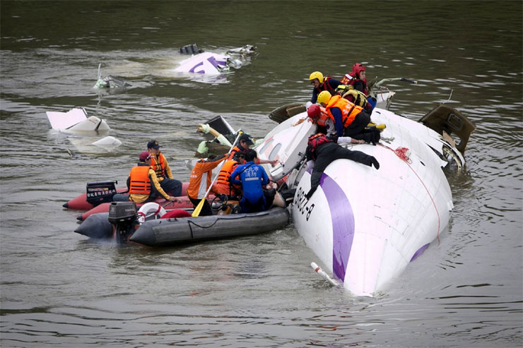 Στον τόπο της συντριβής έσπευσαν σωστικά συνεργεία. Διασώστες με βάρκες προσέγγισαν την ημιβυθισμένη άτρακτο, απομακρύνοντας σώους τουλάχιστον 15 επιβάτες, ανάμεσά τους και δύο παιδιά, σύμφωνα με το κεντρικό πρακτορείο ειδήσεων της Ταϊβάν (CNA).