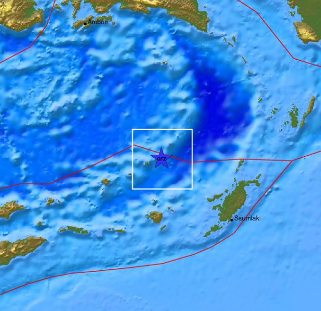 Το επίκεντρο εντοπίζεται 208 χλμ. Βορειοδυτικά του νησιού Saumlaki στην Ινδονησία και το εστιακό βάθος ορίζεται στα 164 χλμ..