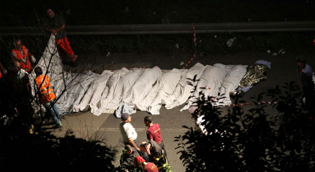 Συνολικά 38 νεκροί και 11 τραυματίες είναι ο τραγικός απολογισμός του μοιραίου δρομολογίου ενός λεωφορείου το οποίο περίπου στις 20.30 το βράδυ της Κυριακής προκάλεσε τροχαίο και στη συνέχεια έπεσε σε γκρεμό ύψους 30 μέτρων στην Ιταλία.