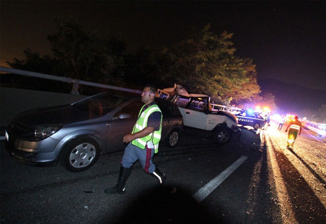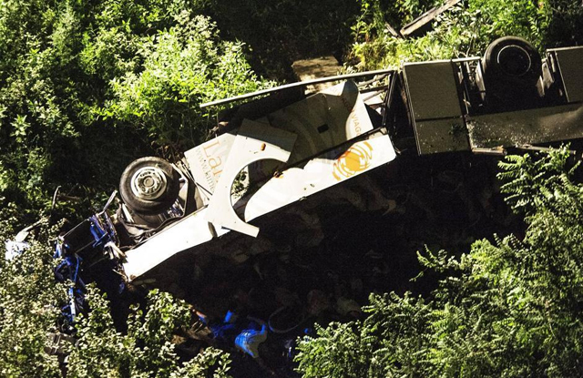Πριν πέσει στη χαράδρα, το λεωφορείο, που ήταν ουσιαστικά εκτός ελέγχου, συγκρούσθηκε με αρκετά αυτοκίνητα. Η συγκεκριμένη οδογέφυρα θεωρείται ιδιαίτερα επικίνδυνη (στο παρελθόν έχουν συμβεί πολλά τροχαία) λόγω της μεγάλης κλίσης που παρουσιάζει, σε απότομη κατηφόρα.