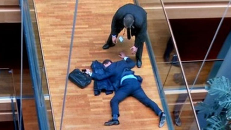 Αναλυτικά η ανακοίνωση του Φάρατζ: «Λυπάμαι βαθύτατα που μετά από μια φιλονικία που έλαβε χώρα κατά τη διάρκεια συνεδρίασης των ευρωβουλευτών του UKIP σήμερα το πρωί, ο Στίβεν Φουλφ στη συνέχεια κατέρρευσε και μεταφέρθηκε στο νοσοκομείο. Η κατάστασή του είναι σοβαρή».