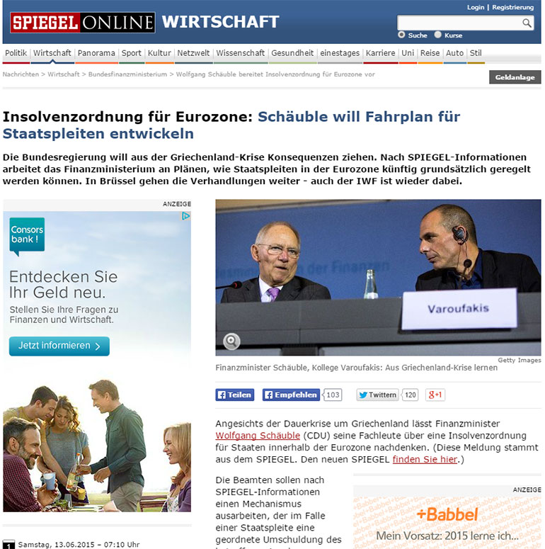 Σύμφωνα με τις πληροφορίες του περιοδικού, στόχος του «τσάρου» της γερμανικής οικονομίας είναι να γίνεται συντεταγμένα η αναδιάρθρωση του χρέους των χωρών που κηρύττουν στάση πληρωμών, χωρίς να επηρεάζεται η λειτουργία της ευρωζώνης.