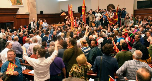 Δραματική τροπή έλαβαν οι πολιτικές εξελίξεις στην ΠΓΔΜ καθώς εκατοντάδες διαδηλωτές, οπαδοί του VMRO -DPMNE του Νίκολα Γκρούεφσκι, εισέβαλαν στο κοινοβούλιο και επιτέθηκαν σε βουλευτές του Σοσιαλδημοκρατικού κόμματος και των κομμάτων της αλβανικής μειονότητας, οι οποίοι εκείνη την ώρα εξέλεγαν πρόεδρο του Κοινοβουλίου.
