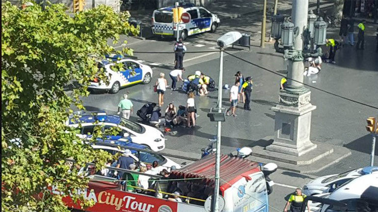 Ήταν λίγο μετά τις 6 το απόγευμα όταν η κεντρική αρτηρία των Ramblas που οδηγεί από την πλατεία της Καταλονίας στη θάλασσα άρχισε να γεμίζει, όπως κάθε μέρα με περιπατητές και τουρίστες. Ένα λευκό βαν αναπτύσσει ταχύτητα και πέφτει πάνω στο πλήθος. Ο οδηγός εγκαταλείπει το όχημα και διαφεύγει τρέχοντας. Η εικόνα είναι εφιάλτικη.