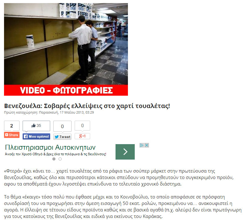 Διεθνή ΜΜΕ μεταδίδουν ότι τους τελευταίους μήνες, δίπλα στους υποστηρικτές της Αντιπολίτευσης κάνουν την εμφάνισή τους όλο και περισσότεροι δυσαρεστημένοι από την οικονομική πολιτική που εφαρμόζει ο Νικολάς Μαδούρο, ο οποίος πασχίζει να καλύψει τις ελλείψεις βασικών αγαθών στην αγορά, συμπεριλαμβανομένου και του χαρτιού τουαλέτας.