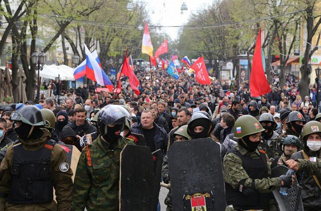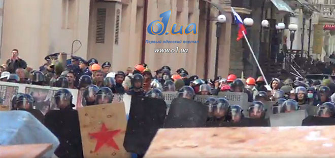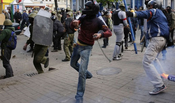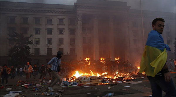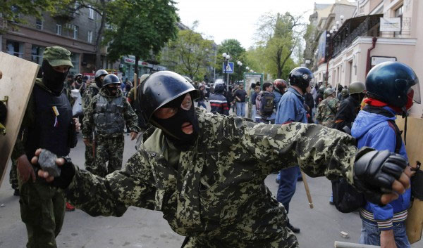 Μετά τις αιματηρές συγκρούσεις στο Σλαβιάνσκ, όπου υπήρξε μεταξύ άλλων και κατάρριψη πολεμικών ελικοπτέρων με νεκρούς Ουκρανούς στρατιώτες, τα βίαια επεισόδια μεταφέρθηκαν στην Οδησσό. Τα διεθνή ΜΜΕ κάνουν λόγο για δεκάδες νεκρούς και εκατοντάδες τραυματίες, ενώ το Κίεβο εκτιμά πως οι νεκροί πλησιάζουν τους 40. Κατεστραμμένα κτήρια, συντρίμμια στους δρόμους, τραυματίες πεσμένοι στην άσφαλτο και αποπνικτική ατμόσφαιρα είναι οι εικόνες που συνθέτουν το πολεμικό σκηνικό στις δύο πόλεις της ανατολικής Ουκρανίας. Σύμφωνα με το ρωσικό πρακτορείο Interfax, το σκηνικό πολέμου στην Οδησσό στήθηκε όταν δύο πορείες διαμαρτυρίας συναντήθηκαν στο κέντρο της πόλης. Ειδικότερα, επεισόδια σημειώθηκαν μεταξύ Ουκρανών εθνικιστών και φιλορώσων αυτονομιστών, με τις εμπλεκόμενες πλευρές να ρίχνουν μολότοφ και να επιτίθενται με ρόπαλα. Δημοσιογράφοι δυτικών ΜΜΕ ανέφεραν πως η αστυνομία δεν προχώρησε στις απαραίτητες ενέργειες για να μην υπάρξει γενικευμένη σύρραξη.
