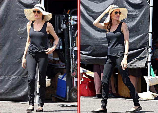Με τις θερμοκρασίες να αγγίζουν τους 40 βαθμούς Κελσίου στην Αυστραλία, δεν προκαλεί εντύπωση που η Angelina Jolie κυκλοφορούσε συνεχώς μ΄ ένα ψάθινο καπέλο στο κεφάλι.