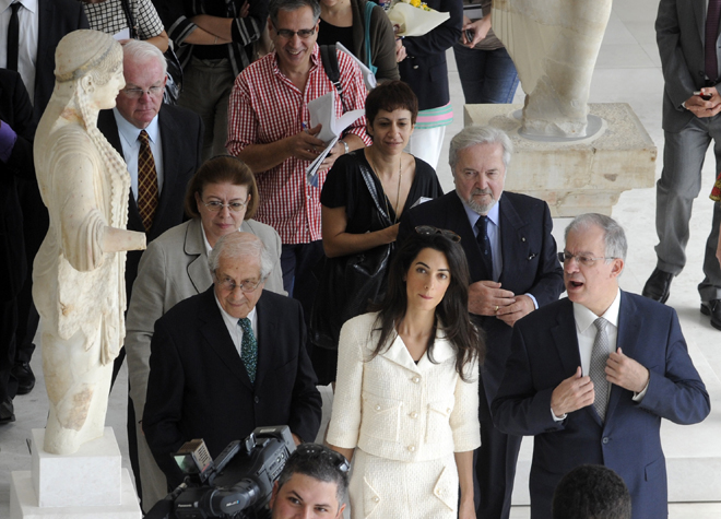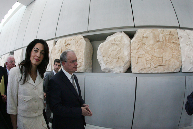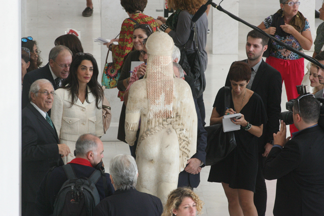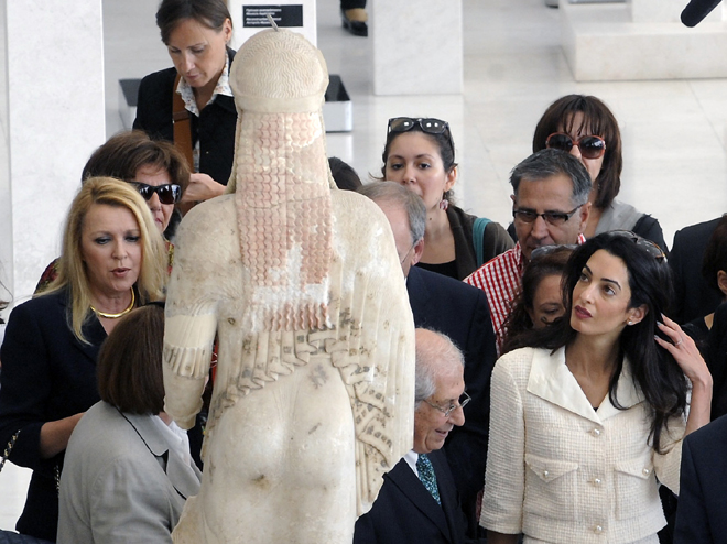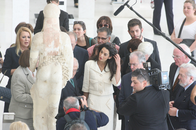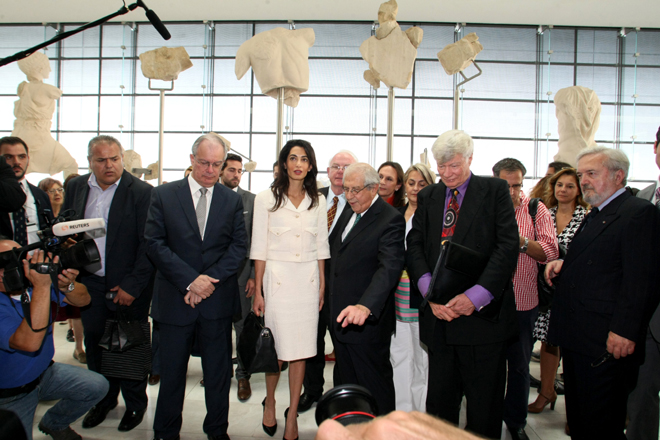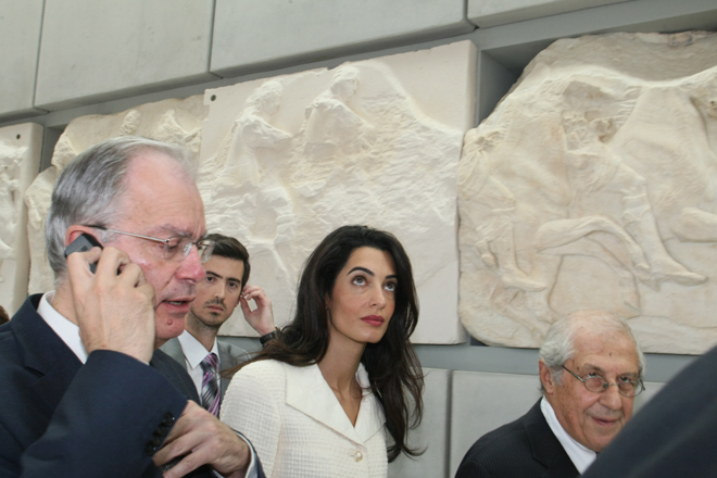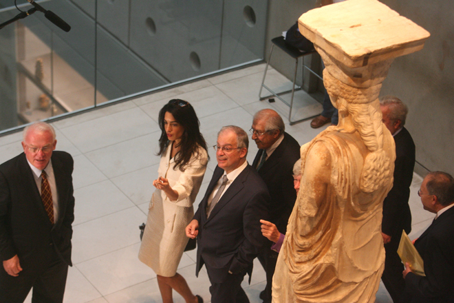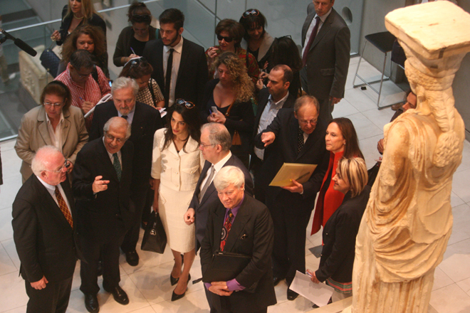 Στο Μουσείο της Ακρόπολης ξεναγήθηκε η δικηγόρος Αμάλ Αλαμουντίν – Κλούνεϊ, που βρίσκεται στην Αθήνα με δύο ακόμη Βρετανούς νομικούς για να προσφέρει στην κυβέρνηση νομικές συμβουλές για τον επαναπατρισμό των Γλυπτών του Παρθενώνα.