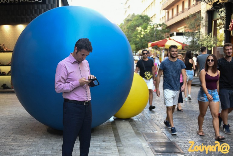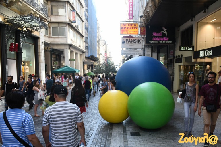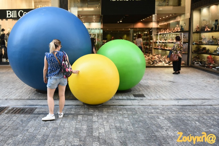 Και ξαφνικά η Ερμού παίρνει χρώμα! Τεράστιες μπάλες έκαναν την εμφάνισή τους στο κεντρικότερο σημείο της Αθήνας, με τους περαστικούς να τις χαζεύουν, να αναρωτιούνται πώς βρέθηκαν εκεί και τελικά να φωτίζεται το πρόσωπό τους από ένα λαμπερό χαμόγελο, όπως συμβαίνει πάντα όταν το γκρίζο φεύγει από τη ζωή μας και φωτίζεται από τα χρώματα της ίριδας!