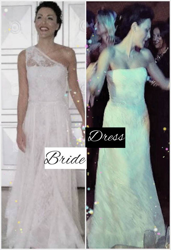Η διακοσμήτρια φόρεσε, όπως έγραψε το govastileto.gr, νυφικό με την υπογραφή των MI-RO. Το πετυχημένο δίδυμο σχεδιαστών είχε σχεδιάσει να βγαίνει το αραχνοΰφαντο, δαντελένιο κομμάτι που κάλυπτε τον έναν ώμο, και το νυφικό να «μεταμορφώνεται» σε μια υπέροχη μάξι στράπλες τουαλέτα για το γαμήλιο πάρτι !