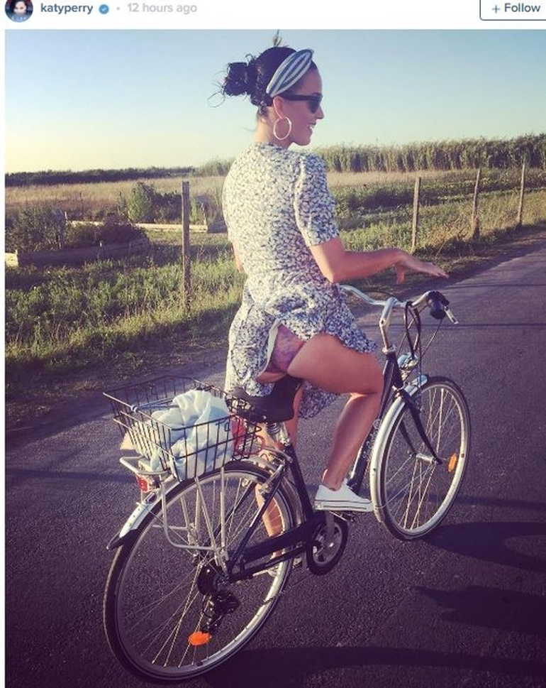 «Ξέρω ότι μπορεί να είναι λίγο προκλητική, όμως… Κάνοντας ποδήλατο στην Il de re, Γαλλία», έγραψε η ίδια στη φωτογραφία που ανήρτησε πάνω σε ποδήλατο και δήθεν τυχαία σηκώθηκε το φόρεμά της και φάνηκε το εσώρουχό της.