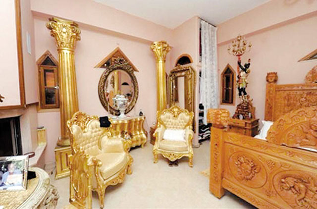 Το εσωτερικό του σπιτιού είναι διακοσμημένο με «βαριά» ξύλινα έπιπλα και αντικείμενα στο χρώμα του χρυσού, ενώ οι εξωτερικοί χώροι θυμίζουν εξωτικό ξενοδοχείο της Καραϊβικής και είναι διακοσμημένοι με ξυλόγλυπτα και μαρμάρινα αγάλματα, καθώς και επιβλητικούς φοίνικες! Παράλληλα, η αναλυτική περιγραφή που συνοδεύει την αγγελία πώλησης του σπιτιού αναφέρει μεταξύ άλλων: