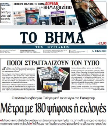 Με άρθρο στην πρώτη σελίδα του κυριακάτικου Βήματος, υπό τον τίτλο «ΠΟΙΟΙ ΣΤΡΑΓΓΑΛΙΖΟΥΝ ΤΟΝ ΤΥΠΟ», γίνεται η αναγγελία -και επίσημα- της αναστολής έκδοσης των ιστορικών εφημερίδων «Το Βήμα» και «Τα Νέα».