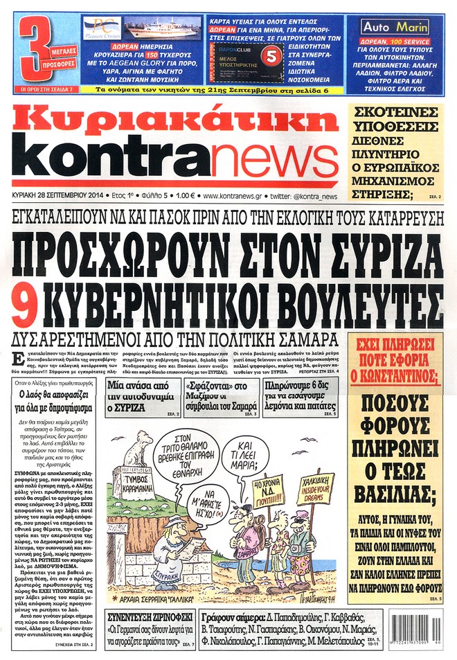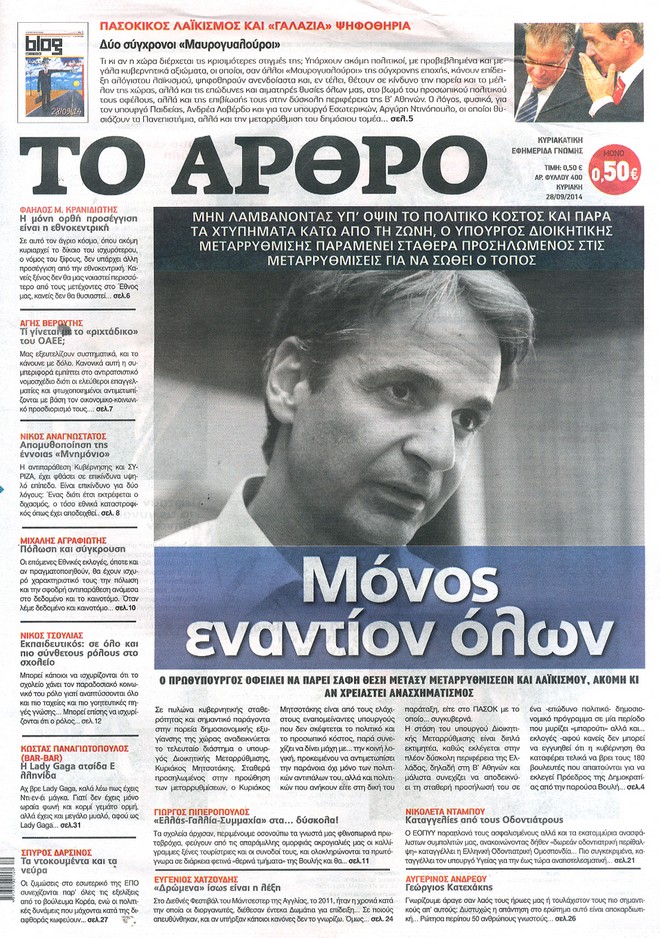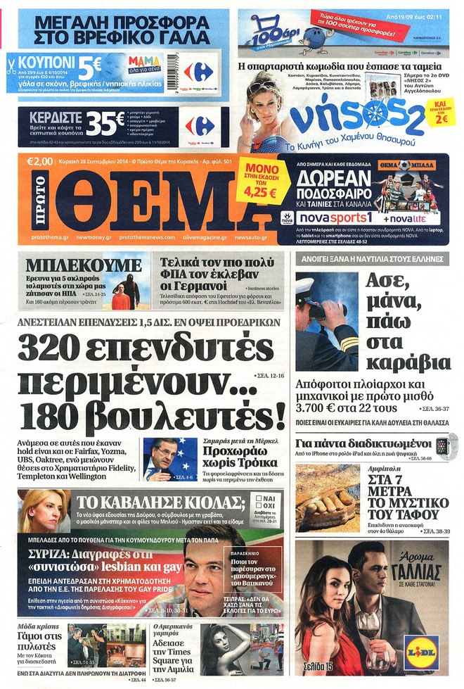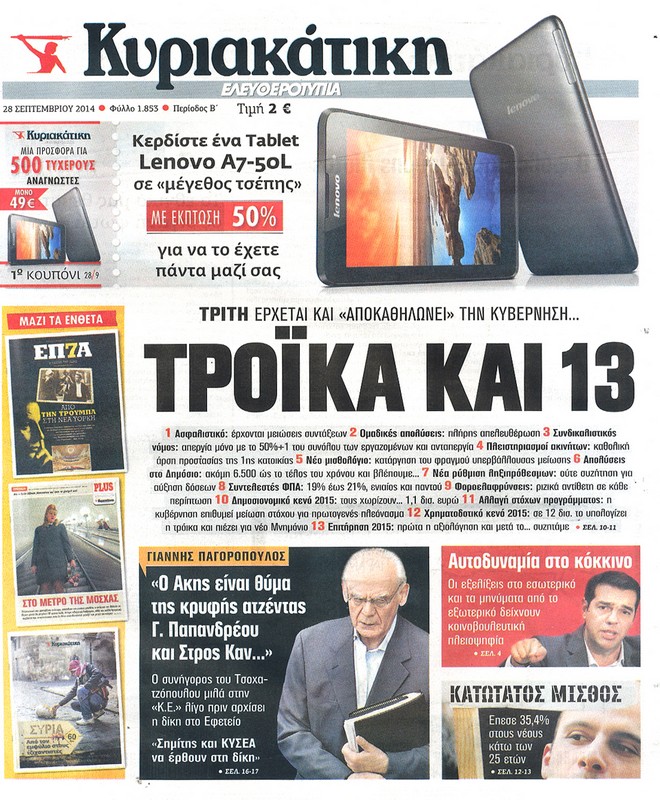 Διαβάστε τα πρωτοσέλιδα των κυριακάτικων εφημερίδων στο zougla.gr: