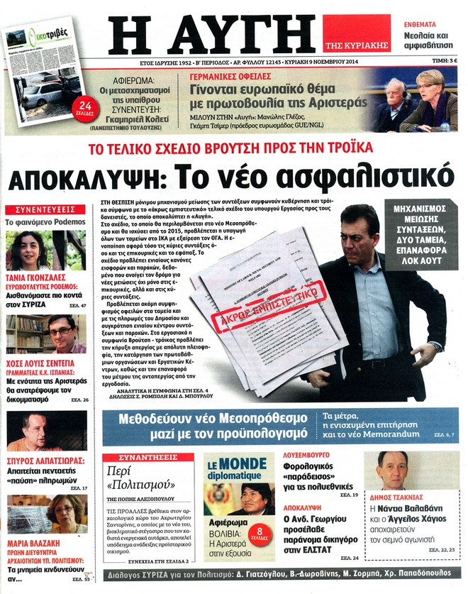 Διαβάστε στο zougla.gr τα πρωτοσέλιδα των κυριακάτικων εφημερίδων.