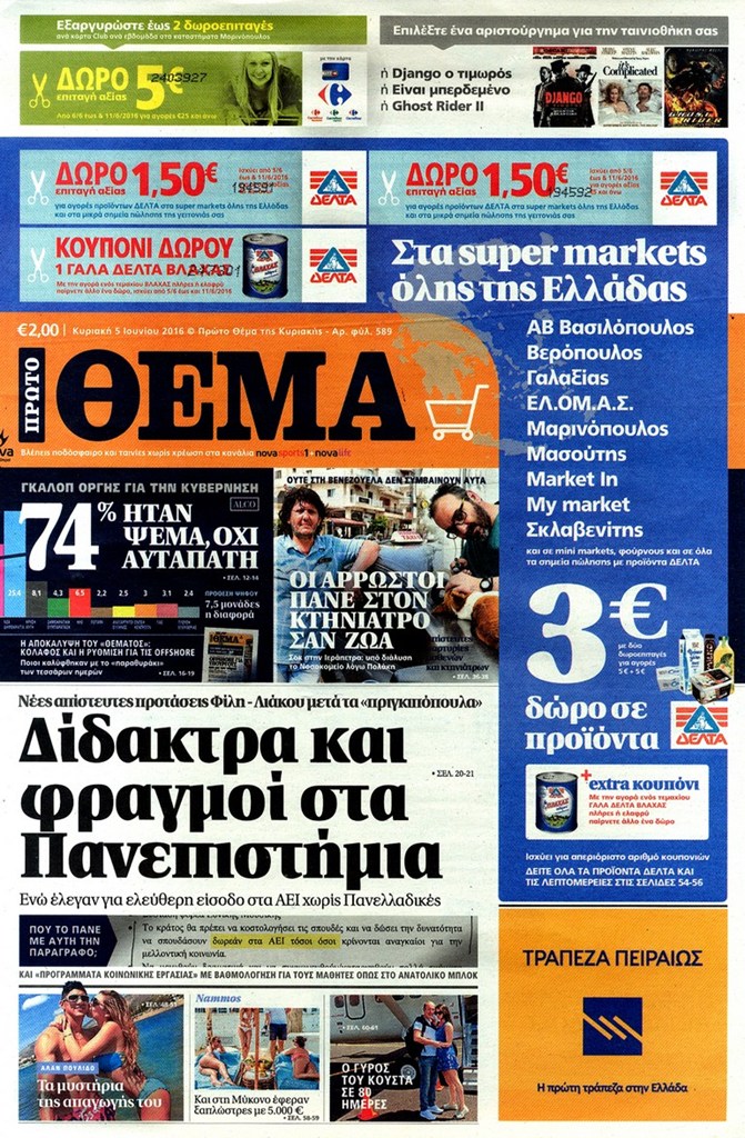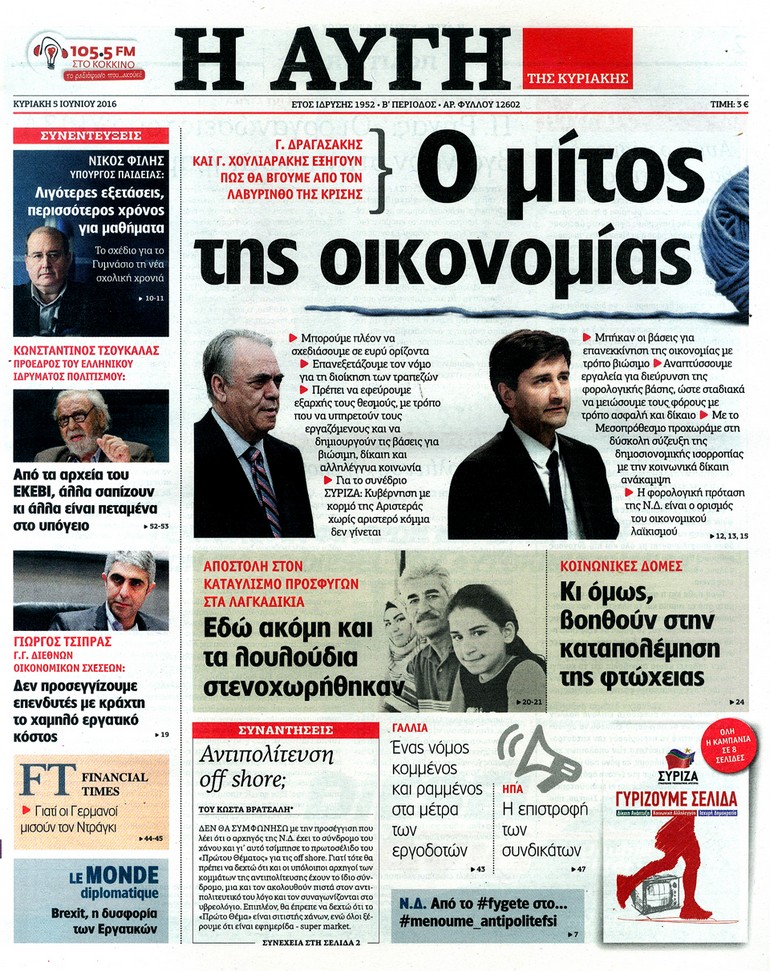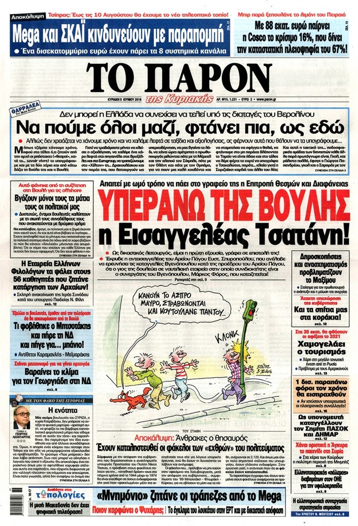 Διαβάστε στο zougla.gr τα πρωτοσέλιδα των κυριακάτικων εφημερίδων.