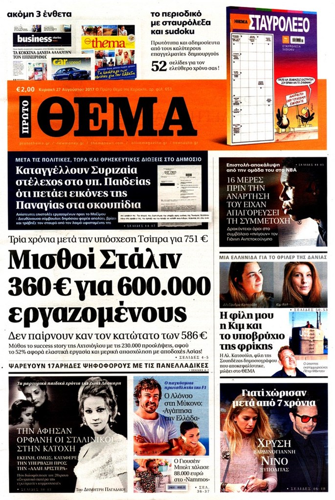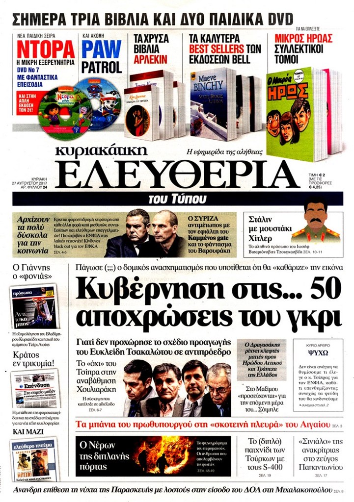 Διαβάστε τα πρωτοσέλιδα των κυριακάτικων εφημερίδων στο zougla.gr: