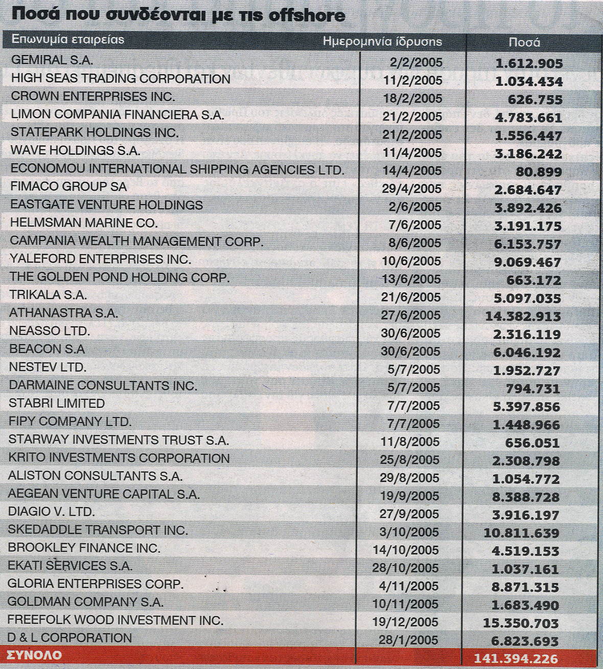 Ενδιαφέρον έχει το γεγονός ότι από την παγκόσμια έρευνα προκύπτει πως οι υπάλληλοι της τράπεζας πρότειναν οι ίδιοι διευκολύνσεις στους εύπορους Έλληνες πελάτες τους, εισηγούμενοι τη σύσταση offshore εταιρειών!Η ιστορία ξεκινά από την κομβική περίοδο του έτους 2005, κατά την οποία τέθηκε σε ισχύ ευρωπαϊκή οδηγία, για την επιβολή φορολογίας στους τόκους καταθέσεων. Ω του θαύματος, εντός ενός πολύ μικρού χρονικού διαστήματος, 33 offshore εταιρείες απέκτησαν τραπεζικούς λογαριασμούς στην ελβετική θυγατρική της HSBC. Άλλες 12 offshore ελληνικών συμφερόντων απέκτησαν λογαριασμό στην HSBC τη διετία 2006-2007 με καταθέσεις που έφταναν τα 35 εκατ. δολάρια.