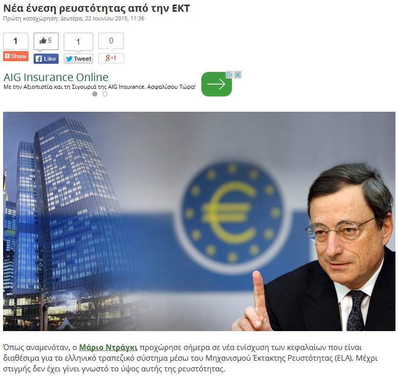 Σε νέα αύξηση του ορίου παροχής ρευστότητας, μέσω του Μηχανισμού Έκτακτης Χρηματοδότησης (ELA), προχώρησε σήμερα η Ευρωπαϊκή Κεντρική Τράπεζα, έπειτα από τηλεδιάσκεψη του διοικητικού της συμβουλίου. Μέχρι στιγμής δεν έχει γίνει γνωστό το ύψος της νέας πίστωσης που χορηγήθηκε στο τραπεζικό σύστημα.