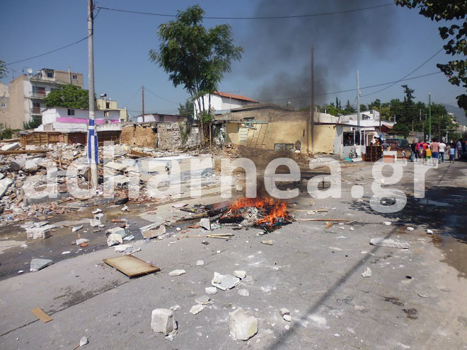 Κάτοικοι της περιοχής ξεσηκώθηκαν μετά την απόφαση των αρχών να κατεδαφίσουν αυθαίρετα κτίσματα, ενώ έβαλαν φωτιά σε κάδους απορριμμάτων και έστησαν οδοφράγματα.