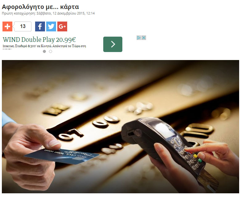 Μια από τις προτάσεις που έχουν πέσει στο τραπέζι είναι η κατοχύρωση αφορολόγητου για μισθωτούς και συνταξιούχους αποκλειστικά με δαπάνες που πραγματοποιούνται με πιστωτικές και χρεωστικές κάρτες. Πληροφορίες αναφέρουν ότι το όριο θα διαμορφωθεί κοντά στα σημερινά επίπεδα (9.550 ευρώ). Στόχος του Υπουργείου Οικονομικών είναι ο φόρος εισοδήματος να φέρει στα κρατικά ταμεία αυξημένα έσοδα (επιπλέον 150 εκατ. ευρώ) μέσα από παρεμβάσεις στους φορολογικούς συντελεστές και κλίμακες.