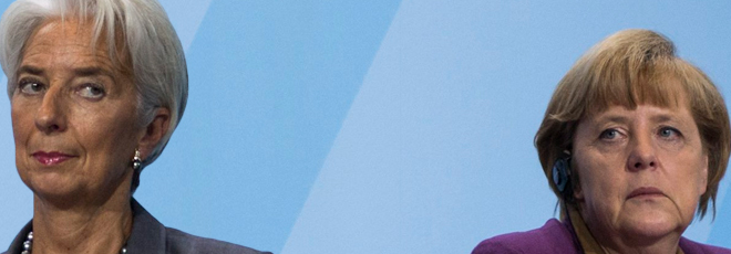 Η καγκελάριος της Γερμανίας εμμένει στην πολιτική της να μη λαμβάνει καίριες αποφάσεις για την οριστική επίλυση του ελληνικού προβλήματος, που κλυδωνίζει το ευρωπαϊκό οικοδόμημα, παρουσιάζοντας το ΔΝΤ ως την… κακιά πεθερά που δεν επιθυμεί τον «γάμο» (π.χ. επέκταση του χρονικού ορίου για τη βιωσιμότητα του ελληνικού χρέους κατά δύο έτη) ο οποίος θα επαναφέρει το κλίμα ηρεμίας στην Ευρώπη. Η Christine Lagarde απαιτεί ξεκάθαρα μέτρα, τα οποία θα βοηθήσουν ουσιαστικά την ελληνική οικονομία να σταθεί στα πόδια της, ζητώντας εγγυήσεις από τα ευρωπαϊκά κράτη, προκειμένου να συνεχίσει να χρηματοδοτεί το δανειακό πρόγραμμα της Ελλάδας, ενώ η Angela Merkel προσπαθεί να φτιάξει… ομελέτα χωρίς να σπάσει τα αυγά.