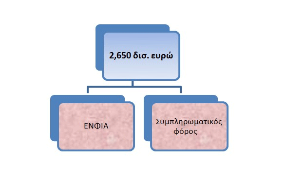 Στα 2,65 δισ. ευρώ διαμορφώνεται το προσδοκώμενο όφελος από τον ΕΝΦΙΑ για τα κρατικά ταμεία. Ο ΕΝΦΙΑ θα καταβληθεί σε πέντε μηνιαίες δόσεις, αρχής γενομένης από τις 29 Αυγούστου, μαζί με τον συμπληρωματικό φόρο, ο οποίος αφορά όσους διαθέτουν ακίνητα αντικειμενικής αξίας μεγαλύτερης των 300.000 ευρώ.