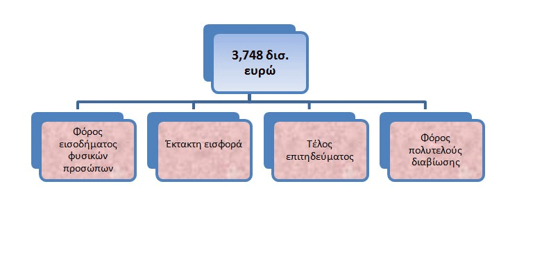 Η αρχή έχει ήδη γίνει, καθώς την Πέμπτη 31 Ιουλίου εκπνέει η προθεσμία για την καταβολή της πρώτης δόσης φόρου εισοδήματος, η οποία αφορά 2,493 εκατ. φορολογούμενους. Σε περίπτωση μη πληρωμής της, αρχίζουν να τρέχουν οι τόκοι και να αιωρείται η απειλή κατάσχεσης περιουσιακών στοιχείων για τους οφειλέτες. Η φοροεπιδρομή περιλαμβάνει μεταξύ άλλων την έκτακτη εισφορά, το τέλος επιτηδεύματος, τον φόρο πολυτελούς διαβίωσης και τον ΕΝΦΙΑ, ενώ το κερασάκι στην τούρτα έρχεται τον Δεκέμβριο, με τα τέλη κυκλοφορίας του 2015.