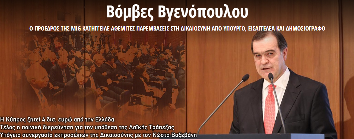 Στην αποκάλυψη ότι η Λαϊκή Τράπεζα της Κύπρου, που βρίσκεται σήμερα σε καθεστώς εκκαθάρισης, προέβη σε προσφυγή στο Διαιτητικό Δικαστήριο κατά της Ελλάδας, ζητώντας 4 δισεκατομμύρια ευρώ από τη χώρα μας, προχώρησε ο πρόεδρος της MIG Ανδρέας Βγενόπουλος κατά τη διάρκεια συνέντευξης Τύπου.