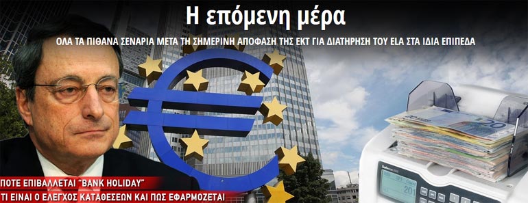 Ημερήσιο όριο 60 ευρώ και περιορισμοί στις μεταφορές κεφαλαίων προς το εξωτερικό Σε καθεστώς σύγχυσης βρίσκονται οι καταθέτες και οι συναλλασσόμενοι καθώς, για πρώτη φορά στην Ελλάδα, οι τράπεζες θα παραμείνουν κλειστές από σήμερα έως και τη Δευτέρα 6 Ιουλίου (bank holiday), υπό τον φόβο κατάρρευσης, λόγω των μαζικών αναλήψεων μετρητών.