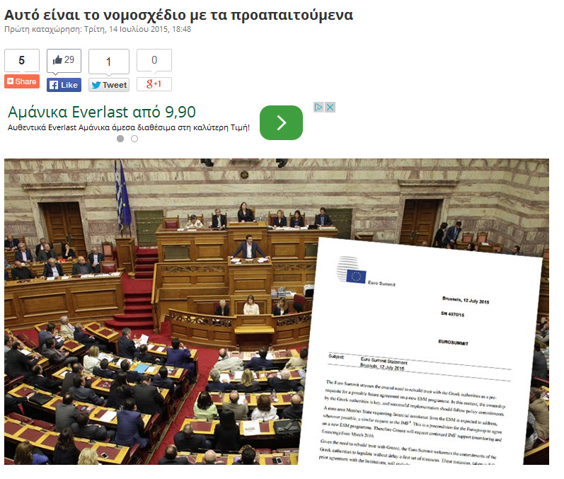 Στα 4 δισ. ευρώ το πρώτο πακέτο μέτρων, το οποίο θα κληθούν να σηκώσουν μισθωτοί, συνταξιούχοι, επιχειρήσεις και ελεύθεροι επαγγελματίες Ήδη, από την επομένη της ψήφισης του πακέτου μέτρων, η διαφορά στην τσέπη νοικοκυριών και επιχειρήσεων θα είναι ιδιαίτερα αισθητή, καθώς θα ακριβύνουν δεκάδες υπηρεσίες και προϊόντα ευρείας κατανάλωσης. Ωστόσο, με στόχο να μη διαταραχτεί περαιτέρω το τουριστικό προϊόν (μετά την επιβολή τραπεζικής αργίας και capital control), η κατάργηση των μειωμένων κατά 30% συντελεστών στα νησιά θα τεθεί σε ισχύ από την 1η Οκτωβρίου στα ανεπτυγμένα τουριστικά νησιά και από την 1η Ιουνίου του 2016 στα λιγότερο ανεπτυγμένα νησιά.
