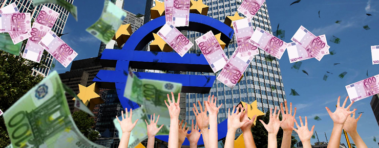 Μια μέρα όλοι οι πολίτες της ευρωζώνης λαμβάνουν στο γραμματοκιβώτιό τους από μια επιταγή αξίας άνω των 500 ευρώ, ίσως και 3.000 ευρώ. Δεν είναι φάρσα, αλλά ένα απλό δωράκι από την Ευρωπαϊκή Κεντρική Τράπεζα της Φρανκφούρτης. Το σενάριο που παρουσιάζει η ηλεκτρονική έκδοση του περιοδικού «Der Spiegel» δεν είναι τόσο παράλογο όσο αρχικά φαίνεται. Μάλιστα, πολλοί σοβαροί ακαδημαϊκοί και οικονομολόγοι απαιτούν ακριβώς αυτό: ο Μάριο Ντράγκι να τυπώσει χρήμα και να το μοιράσει απευθείας στον λαό.