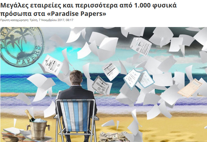 Από τη θηριώδη λίστα των «Panama Papers» ο μόνος ο οποίος αναφέρθηκε είναι ο πανταχού παρών και ως φαίνεται και τα πάντα πληρών σύμβουλος του Αντώνη Σαμαρά, κ. Σταύρος Παπασταύρου. Πέραν τούτου, ουδέν. Όσον αφορά στα «Paradise Papers», μιλάμε για 130 διευθύνσεις στα βόρεια προάστια, στον Πειραιά και στην Αθήνα, με ολίγη Γλυφάδα και Παλαιό Φάληρο. Τις επόμενες ημέρες θα αποκαλυφθούν και οι διευθύνσεις αυτές οι οποίες θα παραπέμπουν σε κάποιους άσημους δικηγόρους, ταπεινούς συμβολαιογράφους και άγνωστα παρένθετα πρόσωπα, πίσω από τα οποία κρύβονται γνωστά γεράκια της ελληνικής παραοικονομίας.