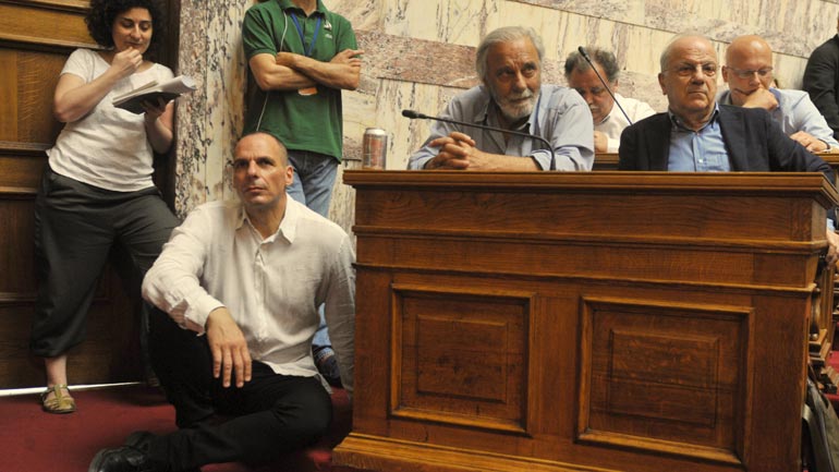 Ο λόγος για τον υπουργό Οικονομικών Γιάνη Βαρουφάκη, ο οποίος δεν έβρισκε στασίδι στην κατάμεστη αίθουσα για την ομιλία του Τσίπρα στην Κοινοβουλευτική Ομάδα του ΣΥΡΙΖΑ και αποφάσισε να κάτσει στο πάτωμα…