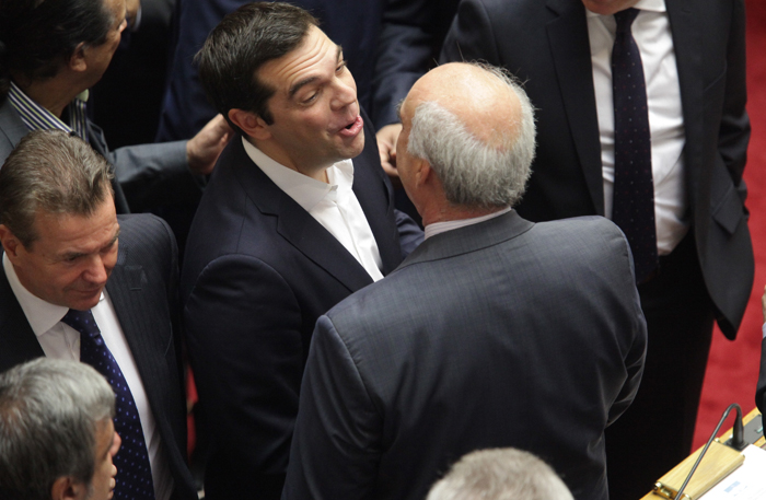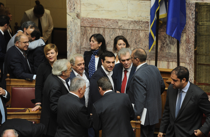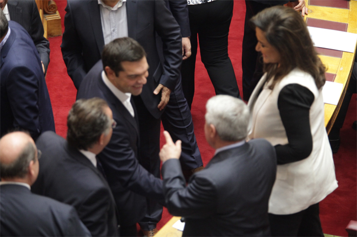 Ο πρωθυπουργός αμέσως κάθισε στο έδρανο του έχοντας δίπλα του τον αντιπρόεδρο της κυβέρνησης Γιάννης Δραγασάκη. Τα πρώτα υπουργικά έδρανα είχαν «καταλάβει» κατά σειρά, οι υπουργοί Παιδείας, Δικαιοσύνης και Πολιτισμού.