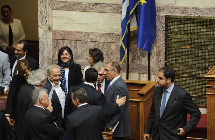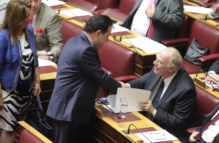 Η ίδια εικόνα και στους διαδρόμους του Κοινοβουλίου όπου είχαν σχηματιστεί δεκάδες πηγαδάκια,ενώ το ενδιαφέρον έκλεβαν αυτά των νεοδημοκρατών ενόψει της επικείμενης εκλογής του νέου προέδρου της ΝΔ.