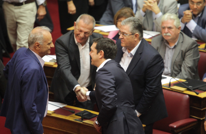 Εξαίρεση ήταν οι 15 βουλευτές του ΣΥΡΙΖΑ, ανάμεσα τους οι υπουργοί, Παιδείας Νίκος Φίλης που έψαλλε μάλιστα, Εσωτερικών Παναγιώτης Κουρουμπλής , ο Μάρκος Μπόλαρης και ο Γιάννης Μιχελογιάννακης, η Λιάνα Κανέλη καθώς και δυο βουλευτές του Ποταμιού η Κατερίνα Μάρκου και ο Ιάσων Φωτήλας .