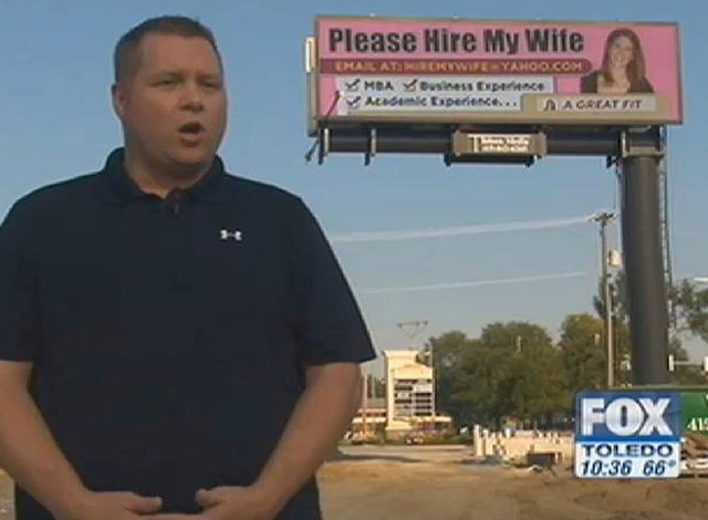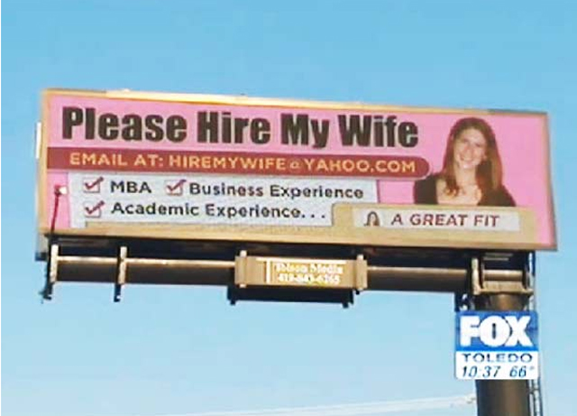 Ο Brandon Stuard παρακίνησε τους επίδοξους εργοδότες να προσλάβουν τη σύζυγό του τοποθετώντας μία διαφημιστική πινακίδα σε κεντρικό σημείο του Οχάιο, που αναγράφει… «Παρακαλώ, προσλάβετε τη γυναίκα μου»!