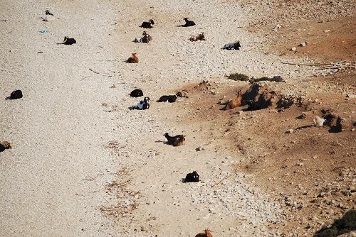 Ένα κοπάδι με γίδια λιάζονταν στην παραλία «Μαραθάκι» στον δρόμο από Μύτικα προς Πάλαιρο. Ήταν ξαπλωμένα φαρδιά πλατιά σε όλο το μήκος της ακτής. Μερικοί διερχόμενοι τουρίστες είχαν σταματήσει και τα φωτογράφιζαν.