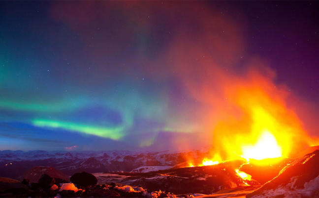 Συνολικά 7 χρόνια παρέμεινε ο Βρετανός James Appleton για να φωτογραφίσει το μοναδικό τοπίο της χώρας, για να τραβήξει μερικές από τις πιο σπάνιες εικόνες πουν έχουν ληφθεί ποτέ. Η σειρά των φωτογραφιών του, απεικονίζουν την έκρηξη του ηφαιστείου Fimmvorouhals, με φόντο το Σέλας. Το κοκκινωπό χρώμα της λάβας συνδυάζεται με το πράσινο από το Σέλας, και η μαγεία της φύσης ξεδιπλώνεται. Δουλεύοντας δίπλα σε ηφαιστειολόγους, ο 25χρονος φωτογράφος δε δίστασε να πλησιάσει αρκετά το καυτό μάγμα του Fimmvorouhals, όταν αυτό εξερράγη προκειμένου να πάρει τις ιδιαίτερα εντυπωσιακές εικόνες, που ακολουθούν.