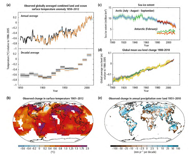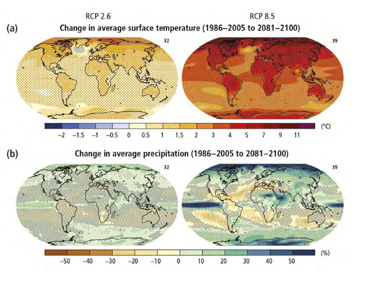 – την «πιθανότητα» (ποσοστό 66%-100%) αύξησης των ισχυρών βροχοπτώσεων και χιονοπτώσεων, ιδιαίτερα στους τροπικούς κύκλους και στα μεγάλα υψόμετρα