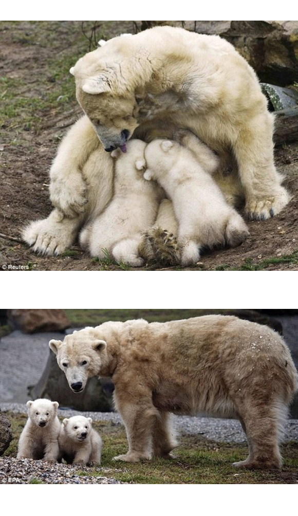 Η μητέρα τους, εν ονόματι Huggies, τον Δεκέμβριο του 2011 γέννησε τρία αρκουδάκια, ωστόσο το ένα εξ αυτών δεν επέζησε.