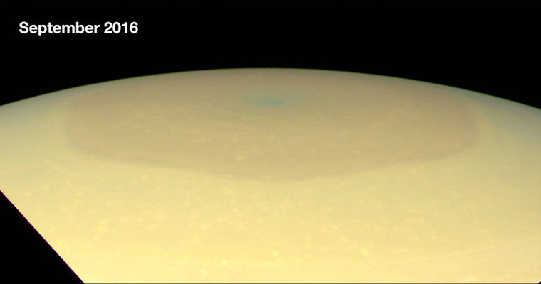 Η αλλαγή από μπλε σε κιτρινόχρυση απόχρωση πιθανώς οφείλεται στο ότι παράγονται πλέον περισσότερα τέτοια σωματίδια, καθώς το βόρειο ημισφαίριο του πλανήτη πλησιάζει στο θερινό ηλιοστάσιό του τον Μάιο του 2017 (το κρόνειο έτος ισοδυναμεί με περίπου 29 γήινα έτη).