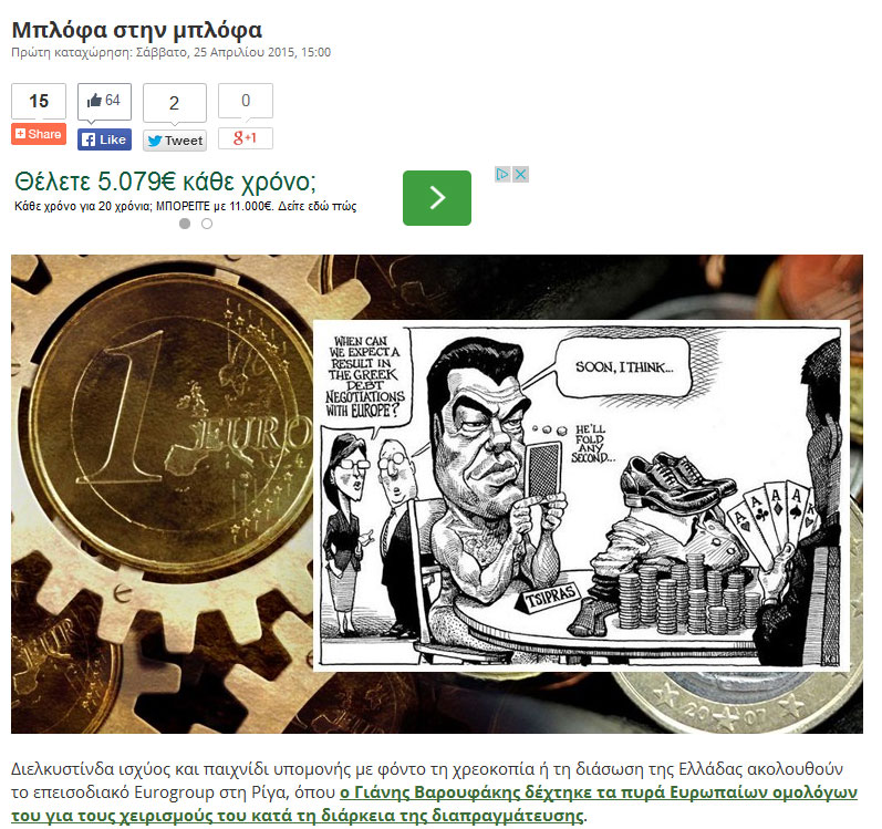 To οικονομικό πρακτορείο κάνει εκτενή αναφορά και στις «γκάφες» στις οποίες υπέπεσε ο κ. Βαρουφάκης, δίνοντας ιδιαίτερη έμφαση μεταξύ άλλων και στην περιβόητη φωτογράφιση για το «Paris Match».