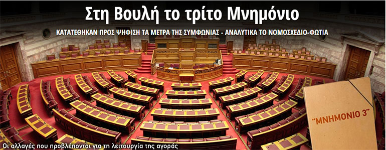 Υπενθυμίζεται ότι χθες η κυβέρνηση κατέθεσε στη Βουλή για κύρωση το κείμενο της συμφωνίας με τους θεσμούς. Η πρόταση της κυβέρνησης είναι το σχετικό νομοσχέδιο να εισαχθεί για συζήτηση και να ψηφιστεί με τη διαδικασία του κατεπείγοντος.